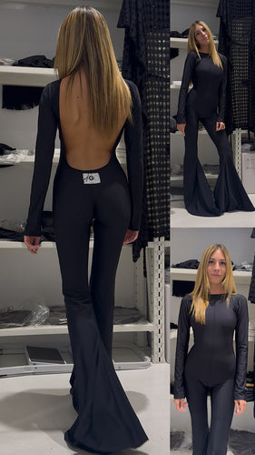 PRE-ORDER BLACK LONG SLEEVE V JUMPSUIT
